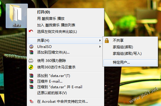 對(duì)你要共享的文件夾右鍵共享,特定用戶,選擇用戶,完成即可。