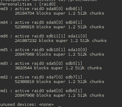 使用 cat /proc/mdstat 來查看RAID分區(qū)的運(yùn)行狀態(tài)