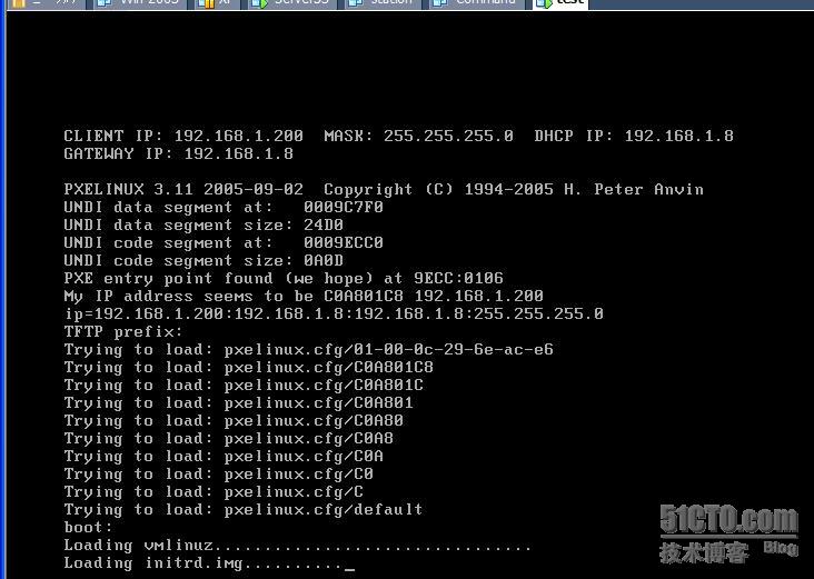 filename "pxelinux.0"; //PXE得到IP以后的引導文件