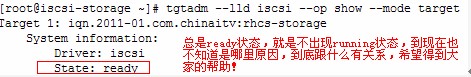 實際上tgtd并沒有啟動成功,用ps查看是查看不到tgtd服務進程的,要想解決此問題,是因為有個/var/lock/subsys/tgtd文件存在,只需刪除掉即可。