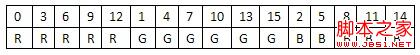 從攝像頭中讀取的數(shù)據(jù)格式是RGB565的,如圖所示。即紅色分量占6位,綠色分量占6位,藍色分量占5位,總共是16位。