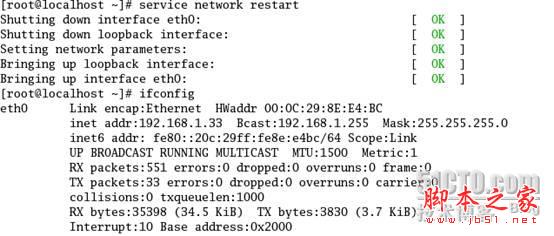 配置完以后重啟動服務.,p地址就配置好了。其實前面3個的配置方法最終還是改變了/etc/sysconfig/network-scripts/ifcfg-ethx下的配置文件罷了。
