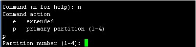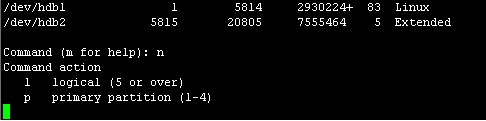 此處就開始劃分擴展分區hdb2下的邏輯分區吧!接著上圖,輸入命令n回車
