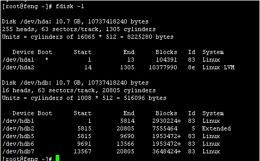 再次使用fdisk -l命令就可以查看到磁盤hdb已經分區成功。