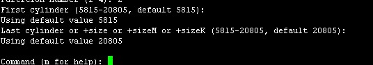 First cylinder (1-20805, default 1):這里是設置分區起始的柱面,直接回車選擇默認即可,回車后如下圖