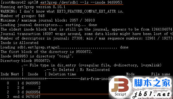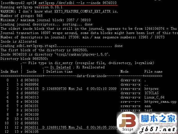 3、查詢所有Inode,(執(zhí)行需要幾分鐘~十多分鐘):   ext3grep /dev/sdb1 –ls –inode 2