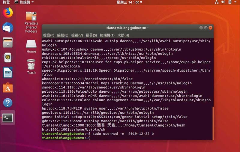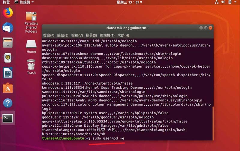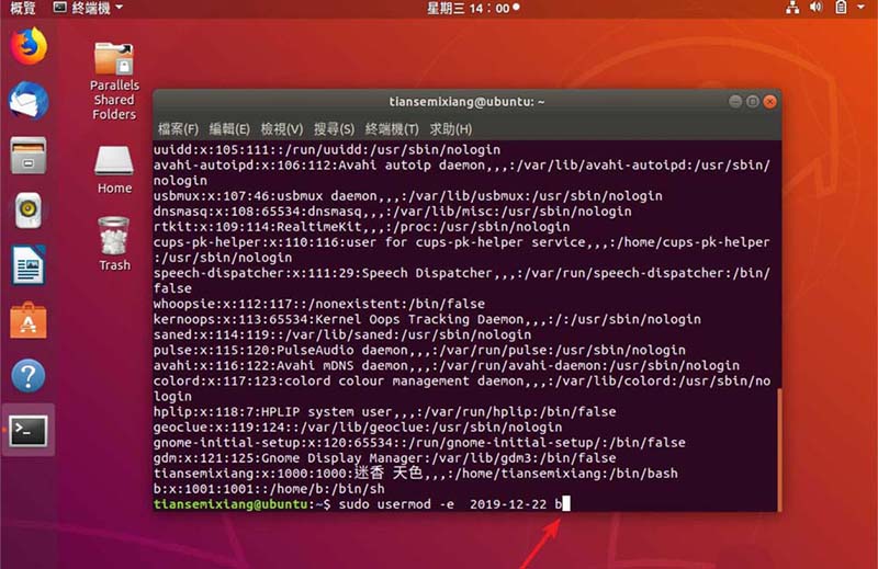5、【sudo usermod - e 】空格輸入延遲密碼過期時間,格式是年-月-日,如下。