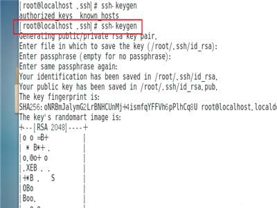 4、用ssh-keygen命令創建秘鑰。再切換到.ssh目錄。