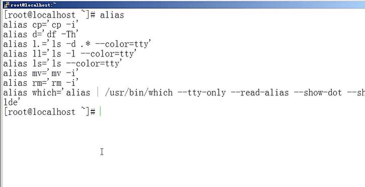 6、最后如果想查看當前系統中有多少別名的話,只需要在命令行中輸入alias即可,如下圖所示