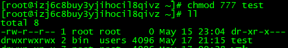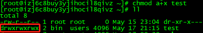 設置目錄test的權限為任何人都可讀、寫、執行。