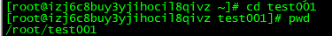 使用root身份讀取目錄test001下的文件test001-1查看目錄物理全路徑:pwd