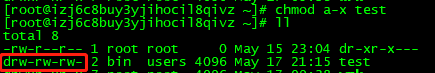 備注:執行權限(x),對目錄而已就是其他用戶能否cd test成為工作目錄。