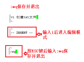 vi file.txt后,鍵盤敲i,可以進入編輯模式,輸入完內容后按ESC鍵,鍵盤輸入:wq可以保存并退出,如下圖