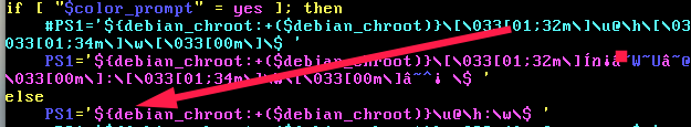 4、按enter鍵,找到如下圖所示的位置。下圖紅色箭頭指向的位置就是要修改的位置。