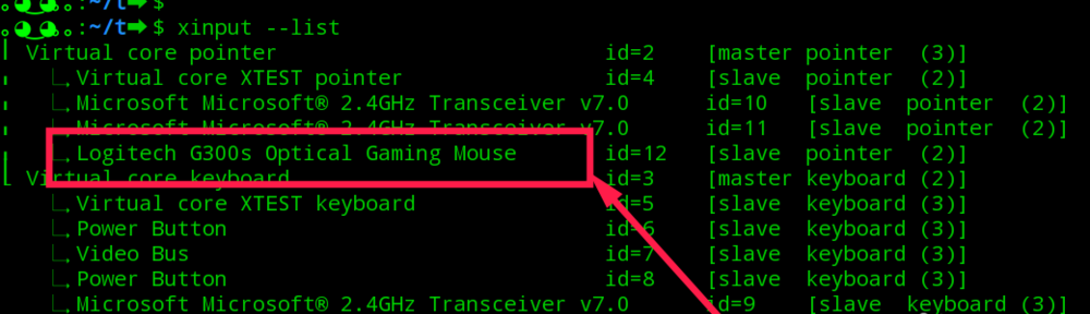 xinput --list-props "pointer:Logitech G300s Optical Gaming Mouse"