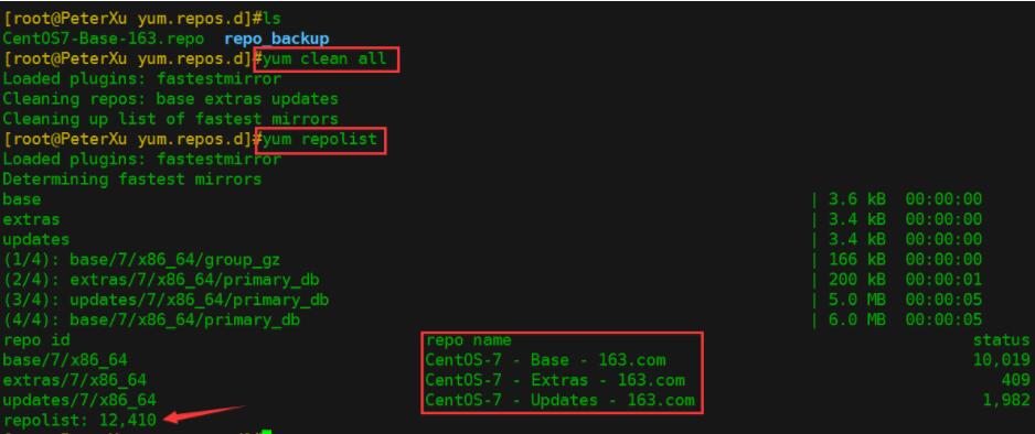 下完后會有一個以repo結尾的163yum源配置文件,直接就可以使用