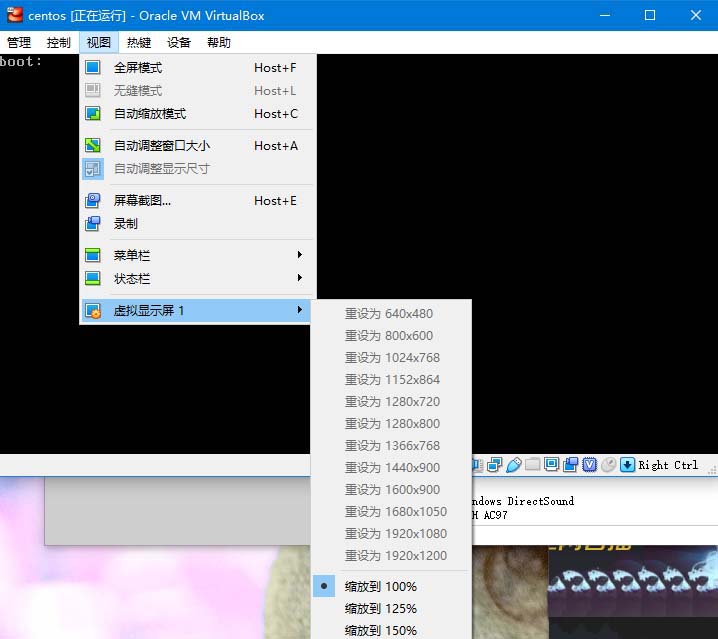 8、此外還支持virtualbox顯示縮放,可以選擇自定義的縮放比例。