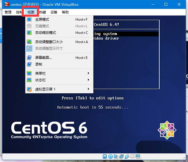 6、virtualbox怎么全屏剛剛上述是分辨率的調整,怎么來實現virtualbox快速全屏。或者調整縮放,找到菜單--視圖。