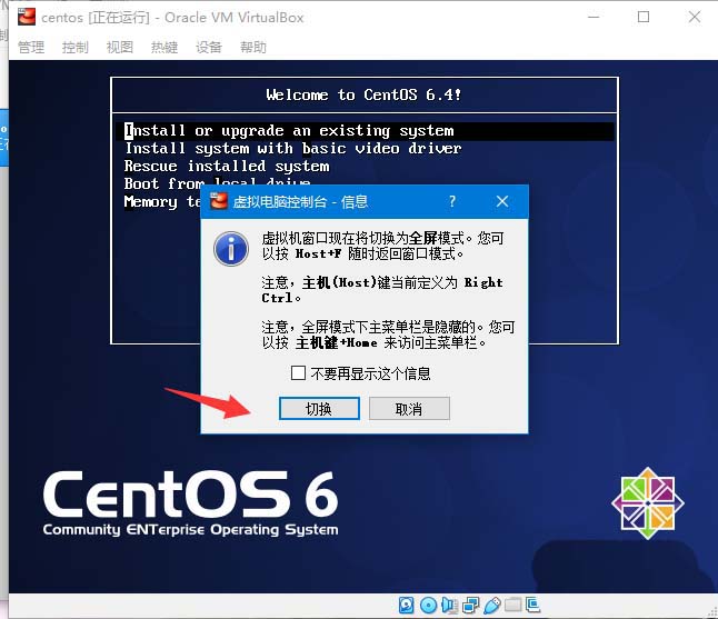 7、根據視圖工具欄提示,使用快捷鍵或者鼠標點擊可以進入虛擬機virtualbox全屏模式。