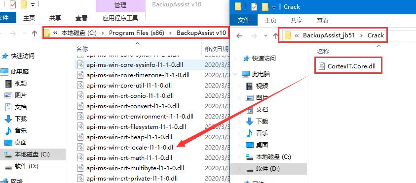 9、將軟件包內(nèi)Crack文件夾的補(bǔ)丁CortexIT.Core.dll粘貼到軟件安裝目錄里(默認(rèn)C:/Program Files (x86)/BackupAssist v10)