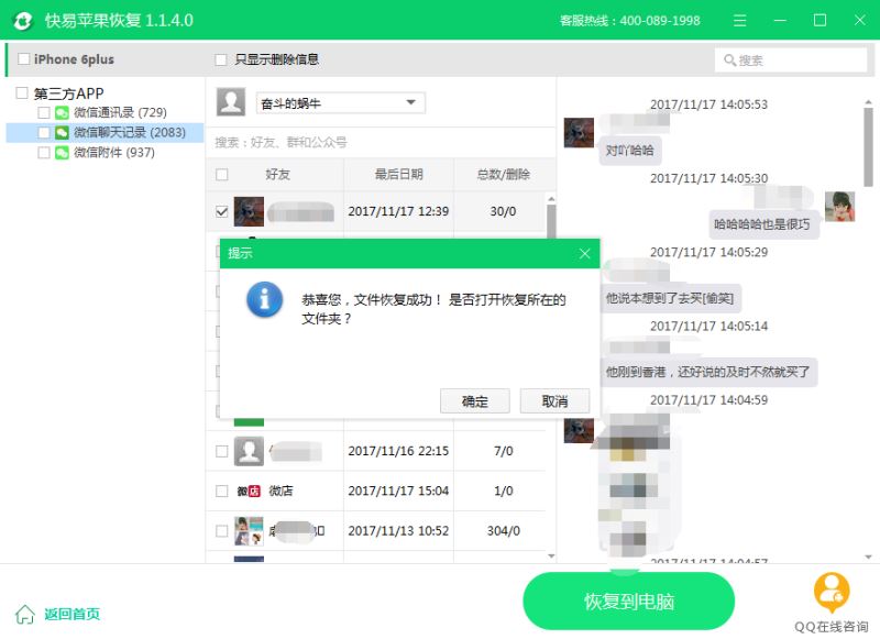 使用快易蘋果恢復找回微信聊天記錄教程