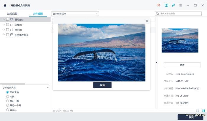 掃描結(jié)束后,你能在左邊面板的路徑視圖和文件視圖中自由切換。預覽目標文件,點擊“恢復”,讓你丟失的數(shù)據(jù)恢復如初。