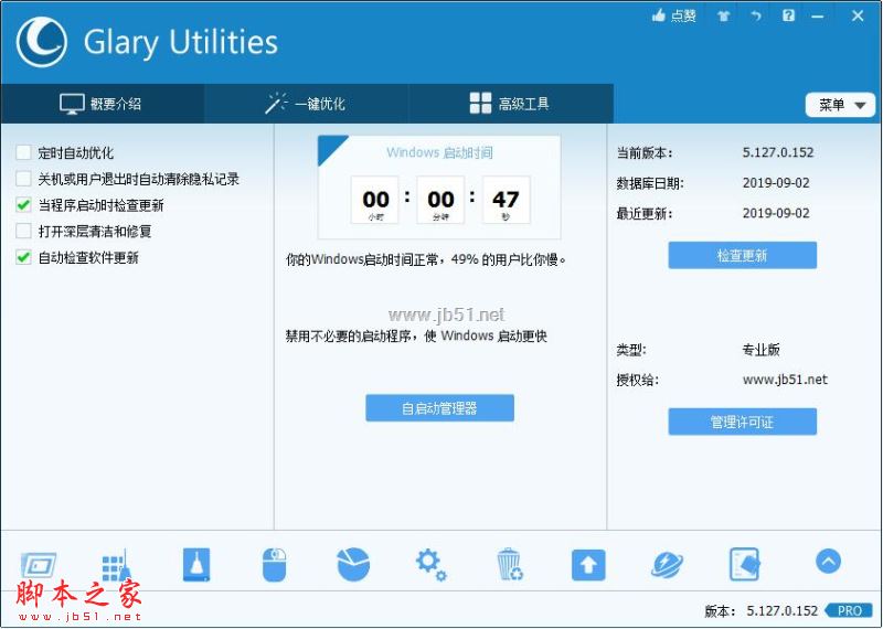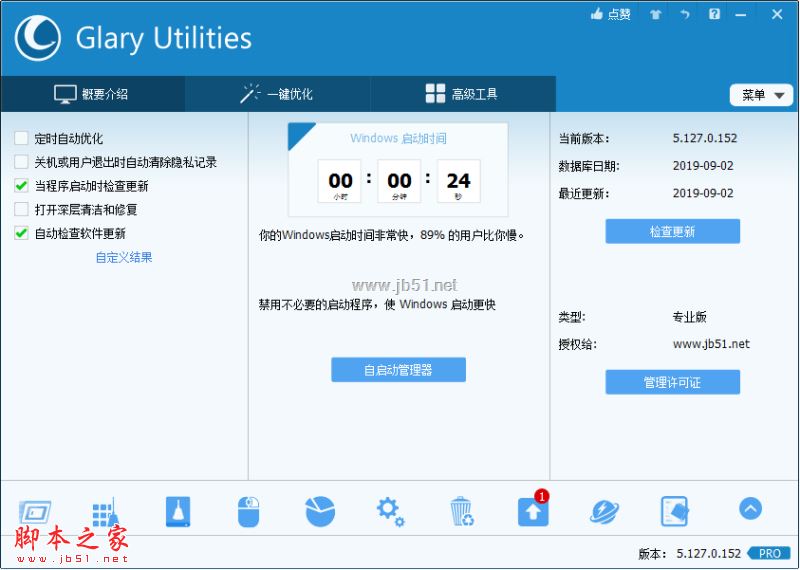 Glary Utilities 專業(yè)版是一款一站式電腦優(yōu)化軟件。它允許你清理系統(tǒng)垃圾文件,無效的注冊表鍵值,上網記錄,管理和刪除IE插件,分析磁盤空間使用情況,查找重復文件,優(yōu)化內存,查找、修理或刪除快捷方式,管理 Windows 啟動程序,卸載軟件,安全刪除文件,查找空目錄,右鍵菜單管理,包括超過20 +系統(tǒng)實用程序來提高你的計算機的性能。支持簡體中文等多語系界面。但是此款軟件需要激活才能使用,那么怎么才能激活此款軟件呢?中文語言界面有怎么設置的呢?下面還有不清楚的朋友一起詳細看看吧!