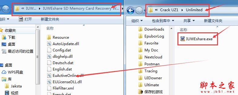 7、在Crack UZ1文件夾中找到破解補(bǔ)丁文件,大家可根據(jù)自己的實(shí)際需要進(jìn)行版本選擇,Unlimited旗艦版和AdvancedPE版本,破解方法是一樣的,本次小編以Unlimited旗艦版為例,將IUWEshare.exe復(fù)制到安裝目錄中(C/Program Files(86)/IUWEshare/IUWEshare SD Memory Card Recovery Wizard)