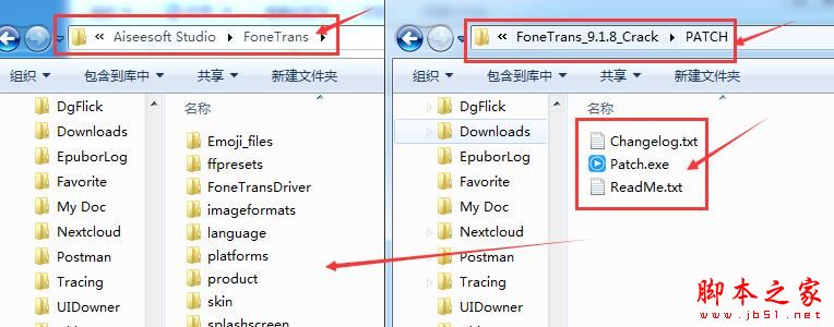 9、將軟件包里PATCH補丁里的補丁復制粘貼到軟件安裝目錄里(默認C:/Program Files (x86)/Aiseesoft Studio/FoneTrans)