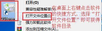 在激活前,請打開軟件安裝目錄,如果忘記,請在桌面上找到軟件快捷方式并且右鍵點擊,選擇“打開文件位置”即可 獲得軟件安裝目錄。
