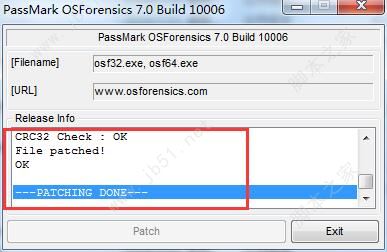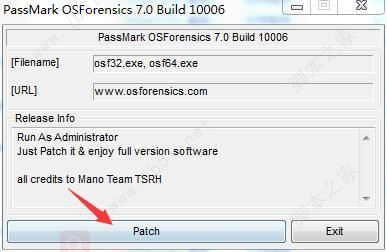 12.在軟件安裝目錄中雙擊打開激活補丁“passmark.osforensics.7.0.build.10006-patch.exe”,點擊 “patch”。如圖