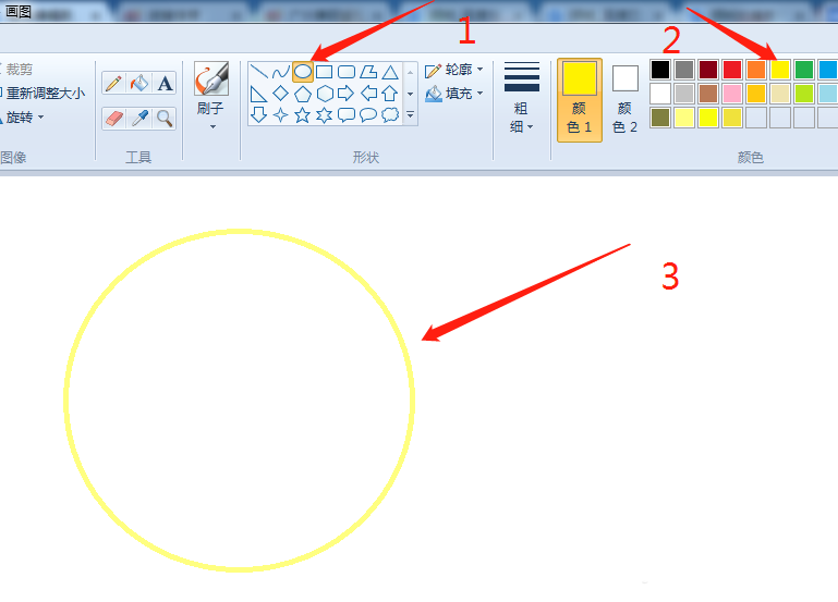 2、選擇橢圓工具,然后顏色選擇黃色,按住“Shift”鍵,拖動鼠標在畫布上畫出一個圓。