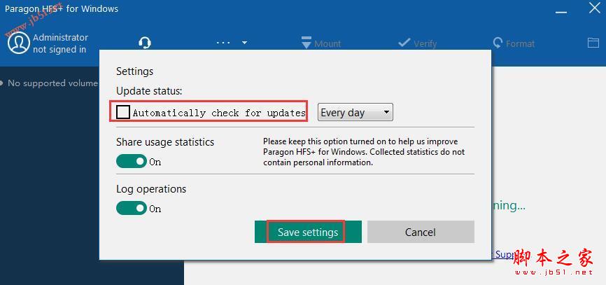 進(jìn)入軟件,選擇Settings,勾掉第一項(xiàng)自動(dòng)更新,保存save settings設(shè)置即可,如圖