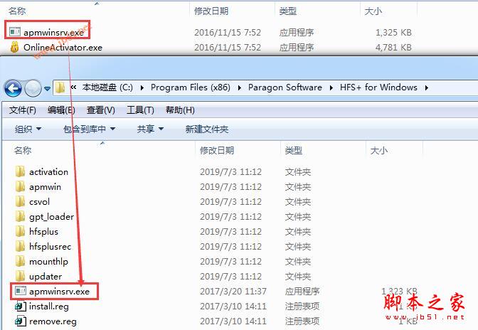 8、打開激活文件,將替換文件apmwinsrv.exe和OnlineActivator.exe分別復(fù)制到安裝目錄替換