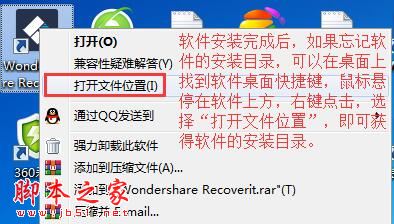 1、代開軟件安裝目錄,如果安裝目錄忘記,可以在桌面上找到軟件桌面快捷鍵,吧鼠標懸停在軟件上面,右鍵點擊,選擇“打開文件位置”,即可快速獲得軟件安裝目錄。