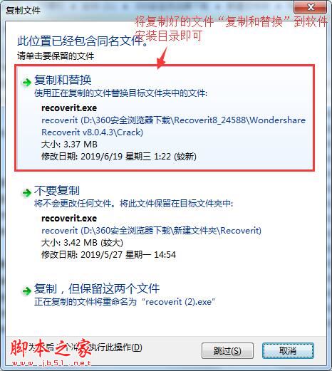 3、將復制好的文件復制到軟件安裝目錄,然后選擇“復制和替換”如圖。因為需要替換三個文件,所以用戶需要點擊三次。