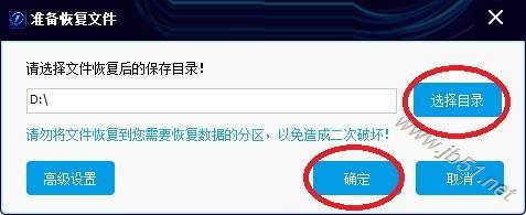 6、點擊“選擇目錄”按鈕,選擇恢復的文件保存在哪個目錄。然后點“確定”按鈕。注意:請不要將文件恢復到有數據需要恢復的分區里,以免造成二次破壞。