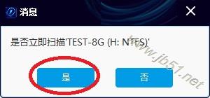 4、彈出對話框,提示“是否掃描TEST-8G(H:NTFS)”,點“是”,軟件掃描H分區數據。