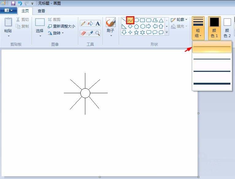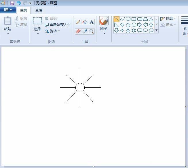 3、選擇直線,圍繞圓圈畫出8條輻射狀線條。