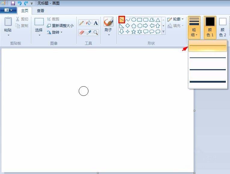 2、在形狀選擇框中選擇“橢圓形”,線條設置為最細,畫出一個圓形。