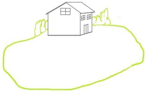 5、畫出草坪的輪廓,及畫出周圍的植物。畫出另外的兩個小窗戶。
