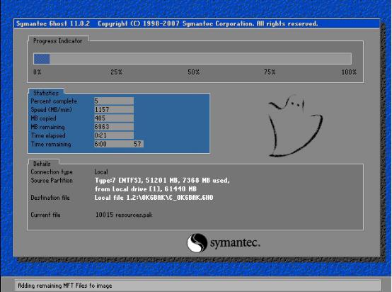 4、最后就是系統備份的詳細過程,備份過程當中我們只需靜靜等待備份完成即可,如圖所示: