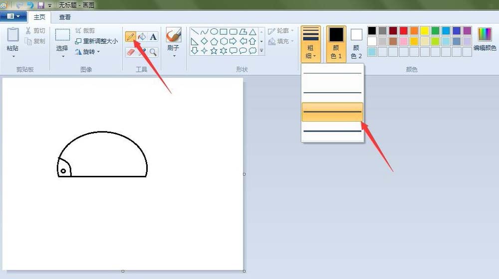 4、身上的刺:點擊“鉛筆”按鈕,線條粗細(第三個),在刺猬身上畫上一些短線條作為刺猬身上的刺。