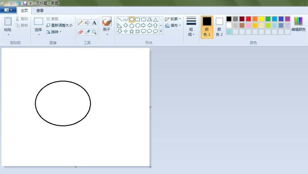 2、身體:點擊“橢圓形”按鈕,線條粗細(第二個)先在“畫紙”適當位置上畫一個橢圓;點擊“橡皮擦”按鈕,將橢圓擦掉一半;點擊“直線”按鈕,在擦掉的地方畫上一條直線。