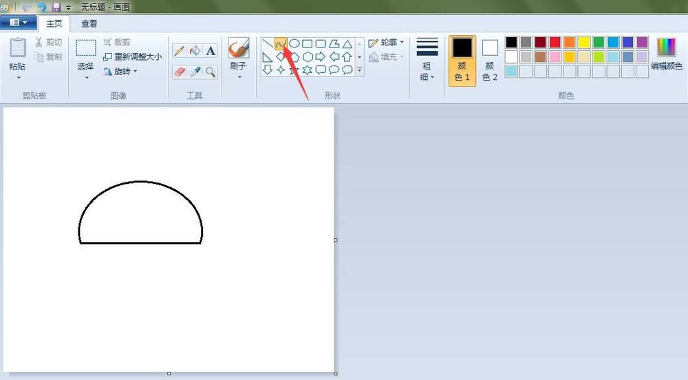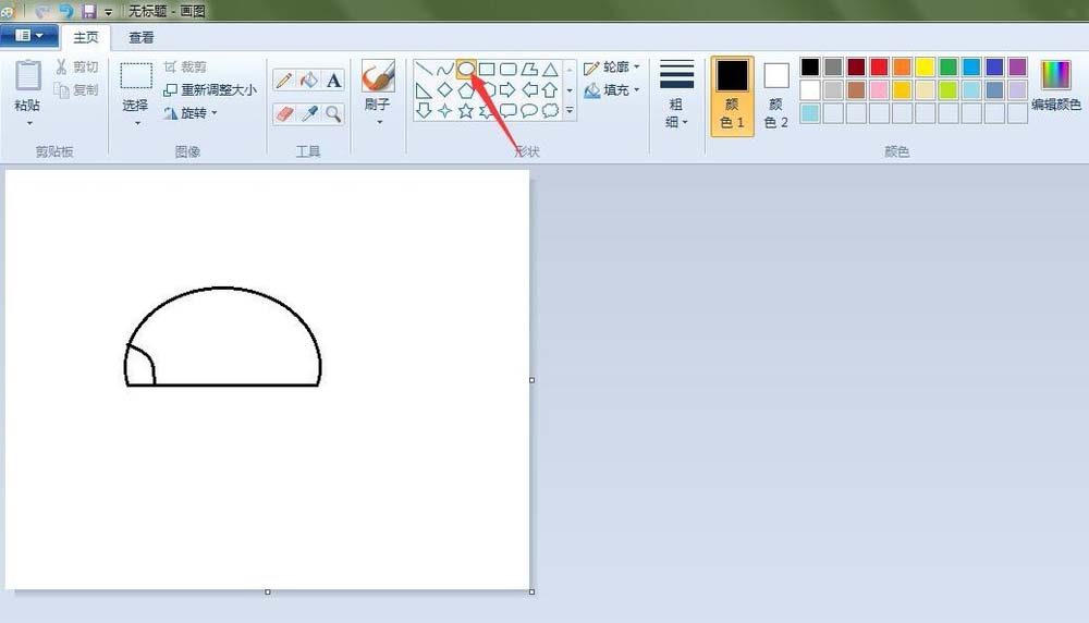 3、眼睛:點擊“曲線”按鈕,先在如圖的地方畫個半弧;點擊“橢圓形”按鈕,畫上眼睛。