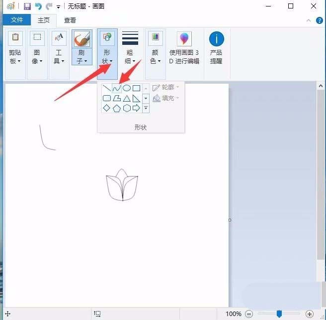2、畫(huà)花瓣:點(diǎn)擊“曲線”按鈕,先在“畫(huà)紙”適當(dāng)位置上畫(huà)出一條曲線,之后就用曲線工具畫(huà)出整個(gè)花瓣。