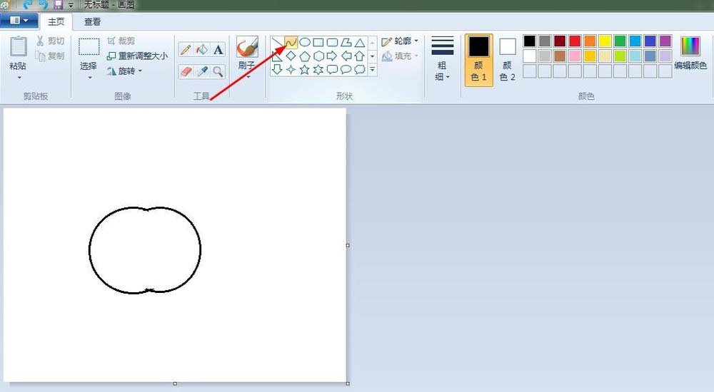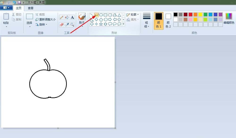 3、蘋果把:點擊“曲形”按鈕,畫出蘋果把。