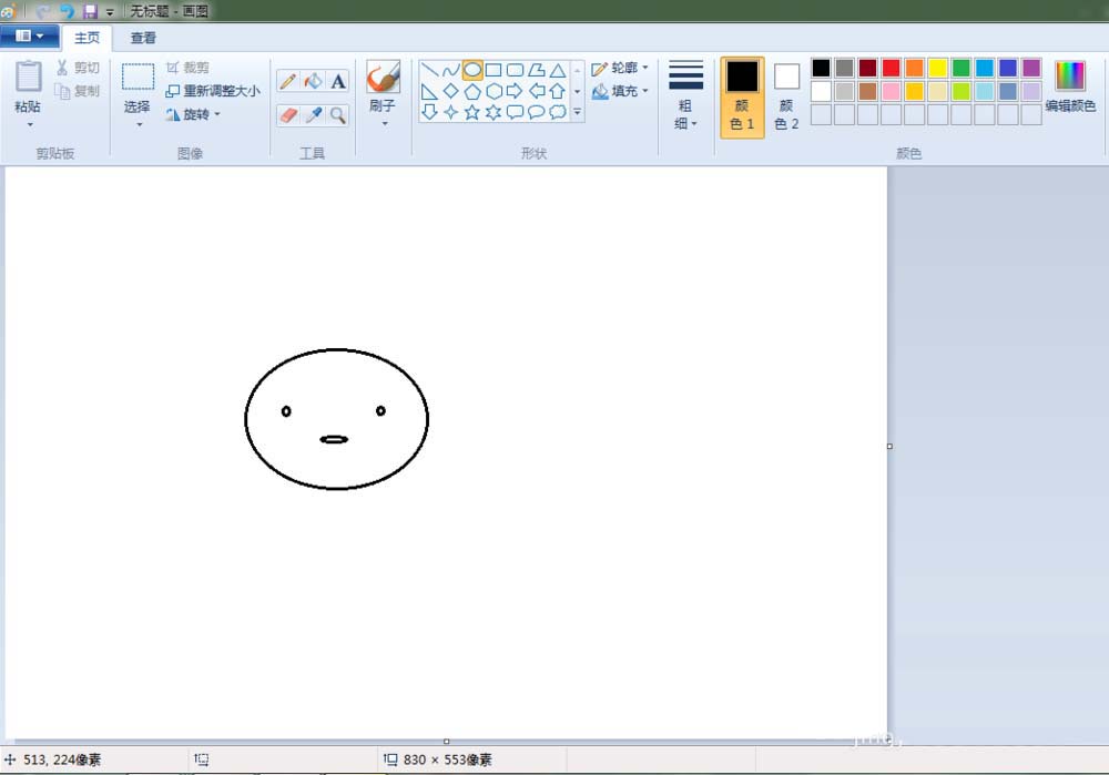 2、頭部:點擊“橢圓形”按鈕,線條粗細(第二個)先在“畫紙”適當位置上畫個橢圓,之后再畫出眼睛和鼻子;點擊“直線”按鈕,如圖畫出嘴巴;點擊“曲線”按鈕,如圖畫出耳朵;點擊“橡皮”按鈕,如圖的地方擦掉。