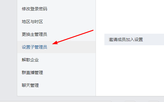 2、進入設置界面,在左側的菜單中選擇【設置子管理員】