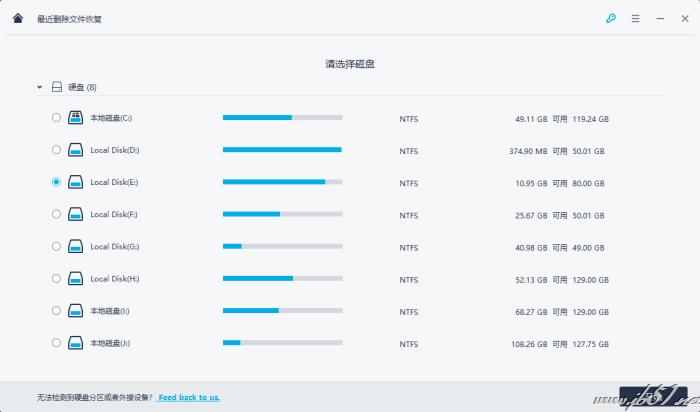 勾選你存有丟失文件的硬盤(C, D, E, F, G,H盤),點擊“開始”按鈕,去掃描搜索你丟失的文件吧。